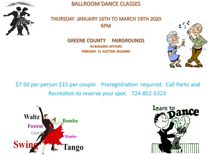 The Greene County Department of Recreation will offer a selection of Ballroom Dance lessons on Thursday evenings from Jan. 16 through Mar. 19.