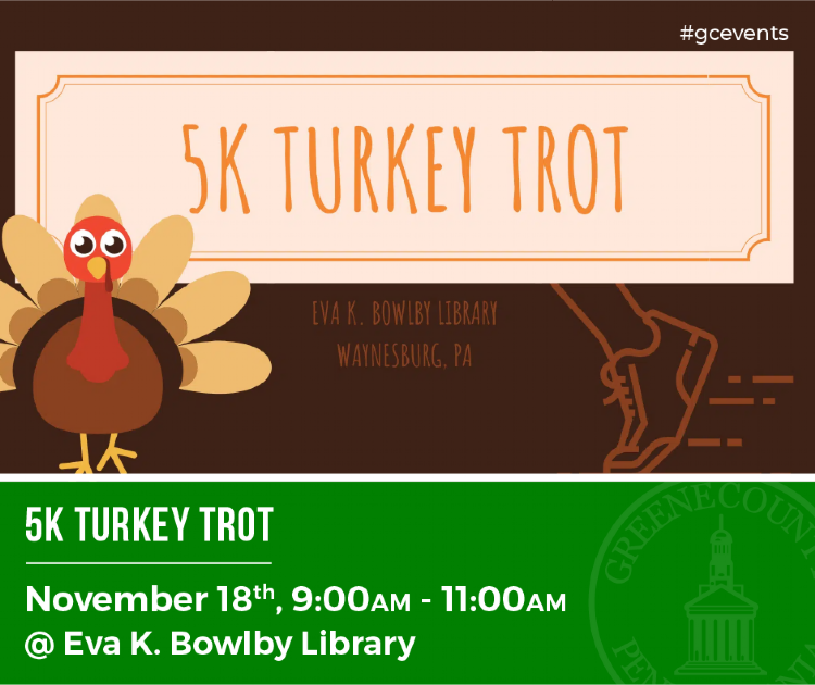 The Eva K Bowlby Library Turkey Trot is the 7th Annual 5K Run/Walk and 1K Children’s Fun Run. This event will raise money to fulfill Eva K Bowlby Public Library’s mission “to provide through the use of traditional and emerging technologies, materials and services for community residents of all ages for Literacy, Information, Fun, and Enrichment.”